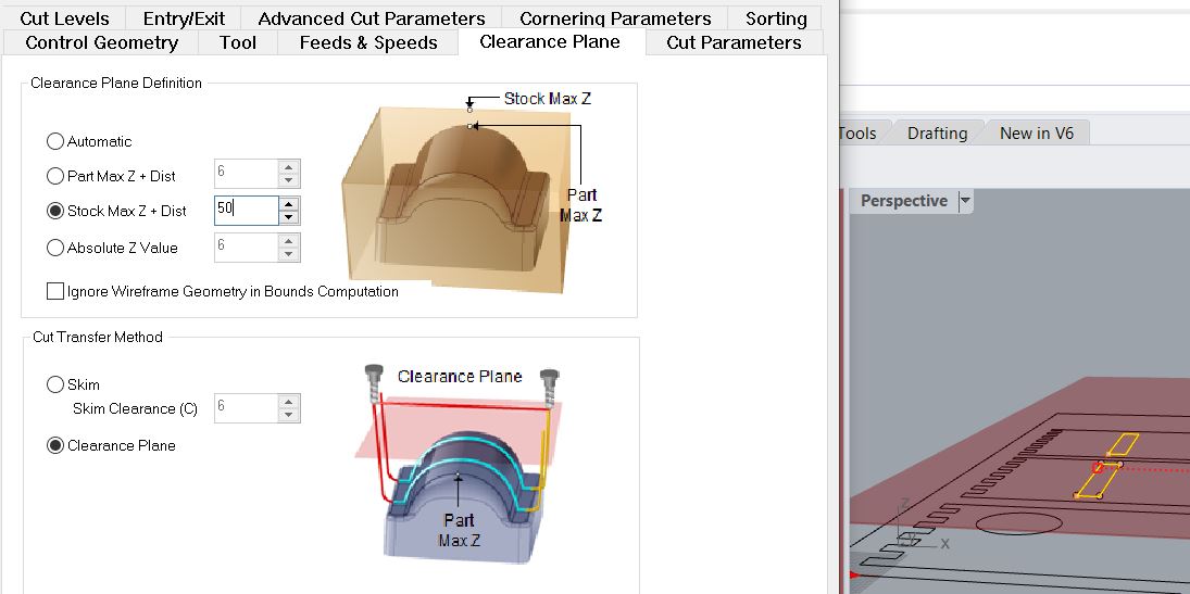 After some investigation I found that the settings for the Clearance Plane was too high and I needed to adjust that. Toadjust the clearance plane settings, go to Clearance Plane > Clearance Plane Definition > and I used the Stock Max + Distance of 50