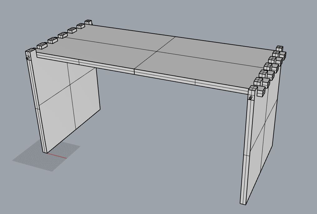 One point that many forget to consider, which I forgot to as well, is the tolerance needed between different obects to fit perfectly. As I made two different lengths for the legs of the desk that I would like to change between I did not want it to be a press fit. Instead, I would like to keep distances between the grooves and have aligned holes where I can use a dowel to lock them. This method will also allow me to change the angle that the legs are standing on.