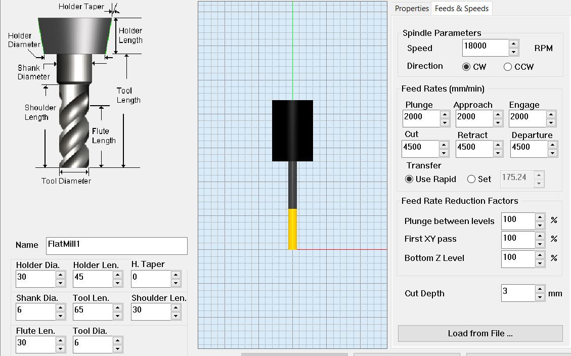 For this type of design I will be using a 6mm End Mill. Its settings are shown in the image below. Always remember to check the Feeds&Rates with every job to match the values places in this step. For more information about the CNC Feeds&Rates, you can look through the The CNC Cookbook