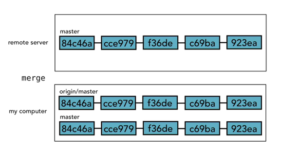 And when we merge git will move the head pointer of the master to the head pointer for the origin/master.