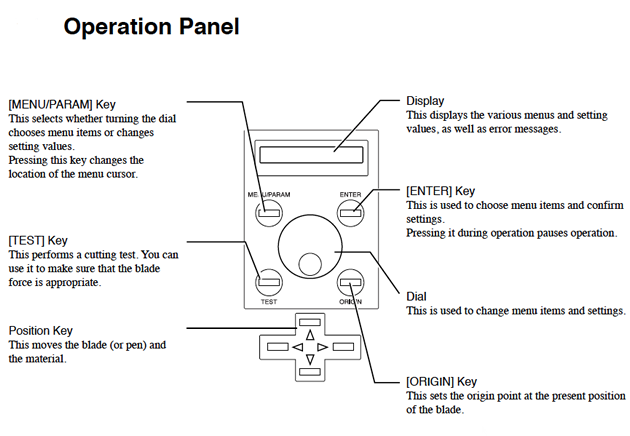 1. Rotate the wheel under the LCD screen on the vinyl cutter to the right.
