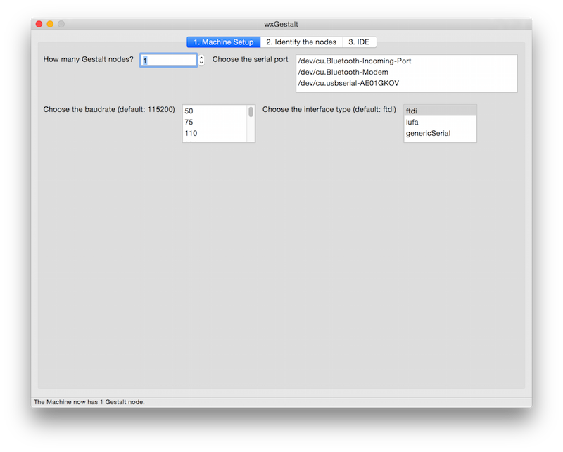 There are many tabs in wxGestalt, they are supposed to be used according to the number, so let's start with the first tab. It is needed in order to configure the machine. At the moment it is very simple, but there are more settings under development: