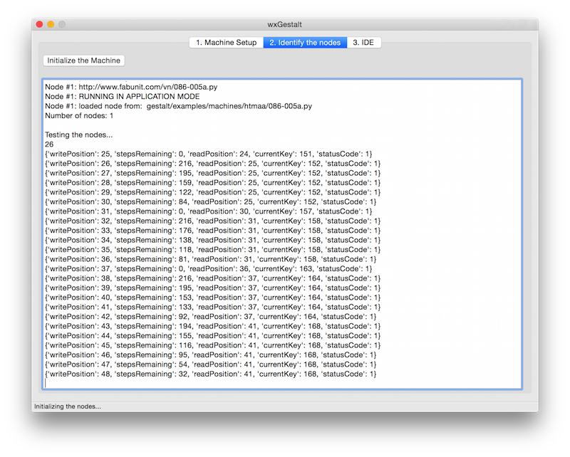 In the second tab you can identify the nodes, as you would do in any of examples. It basically redirects the terminal to the screen. Click on the "Initialize the machine" button to launch the identification.