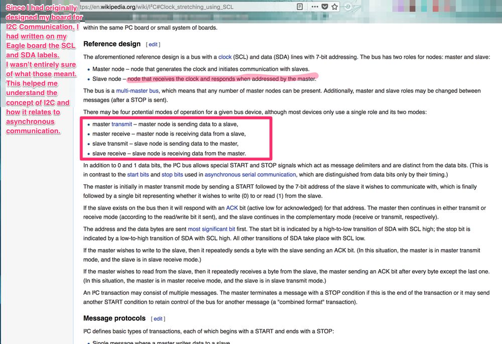 For this week's assignment I've decided to go use the I2C communication protocol. In order to further understand the concept, I have followed the I2C tutorial on Sparkfun.
