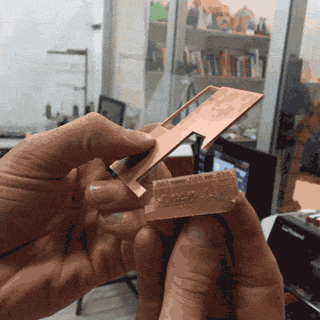 In the computer, we open Roland's VPanel software. This is where we set the home origin of our tool: X, Y and Z. We used a 1/64 toolbit for the traces and a 1/32 one for the outline. One of the trickiest parts is determining the Z home coordinate. The tools are very fragile (specially the 1/64 one) and if you move it along the Z axis too fast, it might break. It is best to move it down very slowly, one step at the time to make sure it remains intact and that the copper layer is coming out.