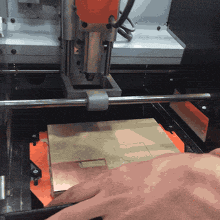 We first secured the PCB to the milling machine's sacrificial layer with some double-sided tape.