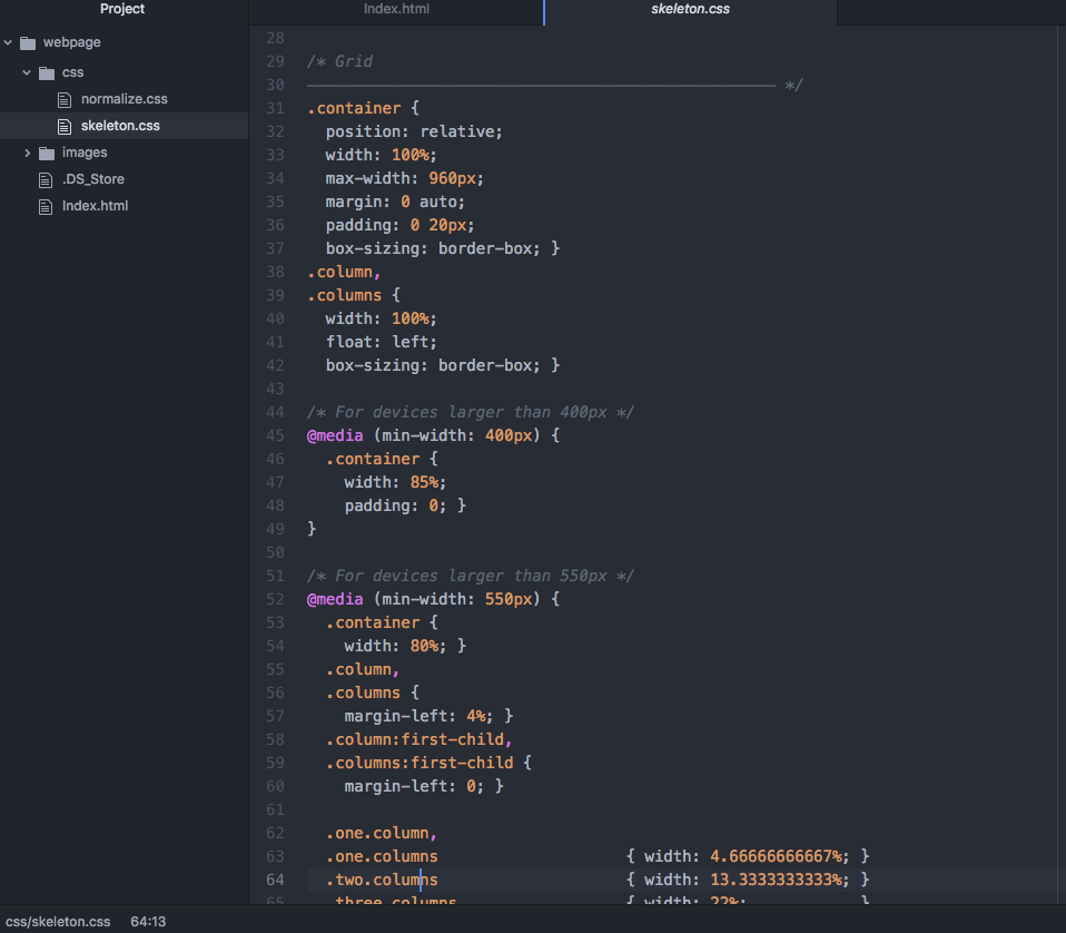 I knew I wanted to do my own webpage and that I wanted to keep it simple. So I dismissed the idea of a template although I'm regretting it but found Skeleton, a responsive boilerplate with 400 lines of css code plus the normalisation css document for the different types of browsers and devices.