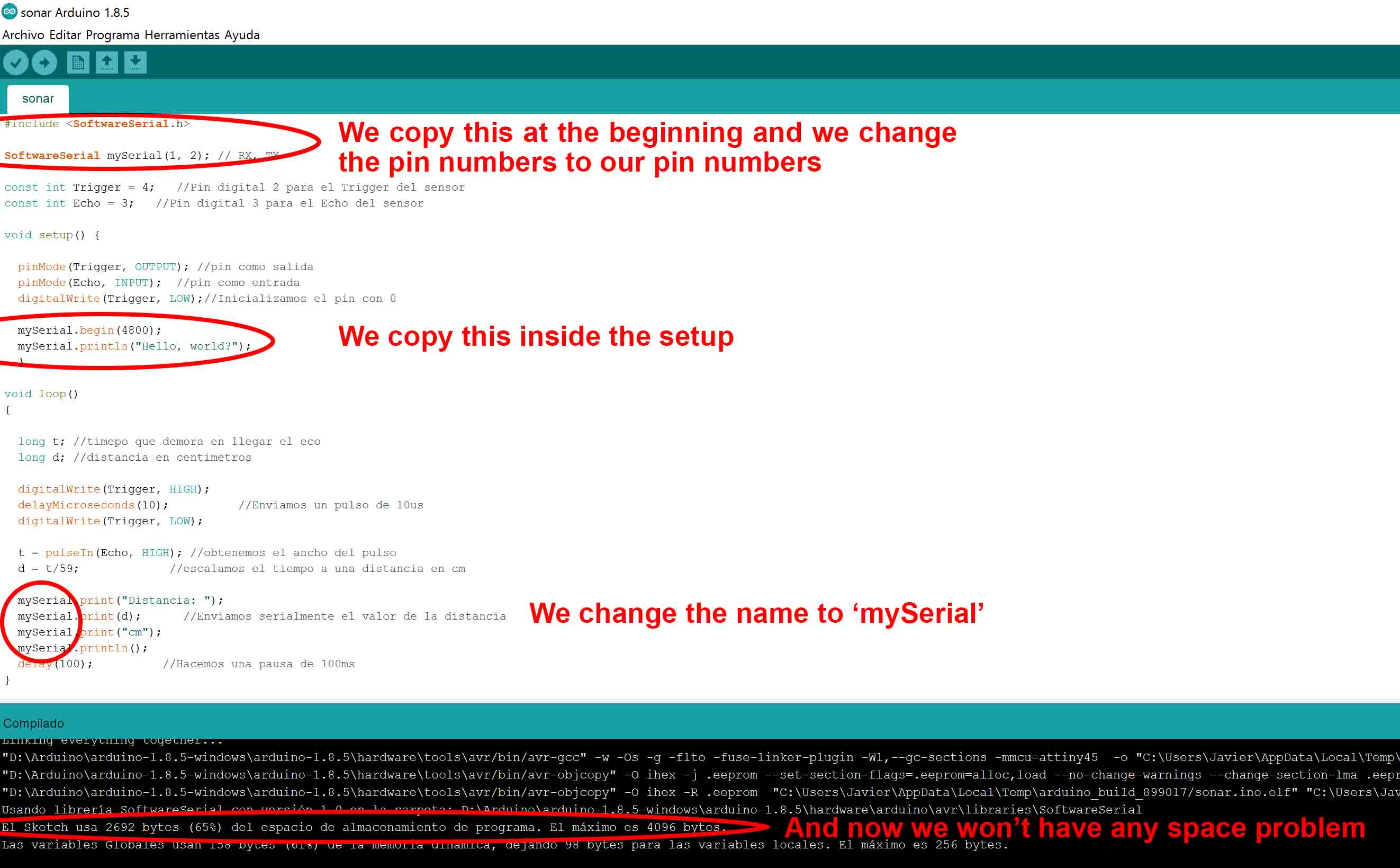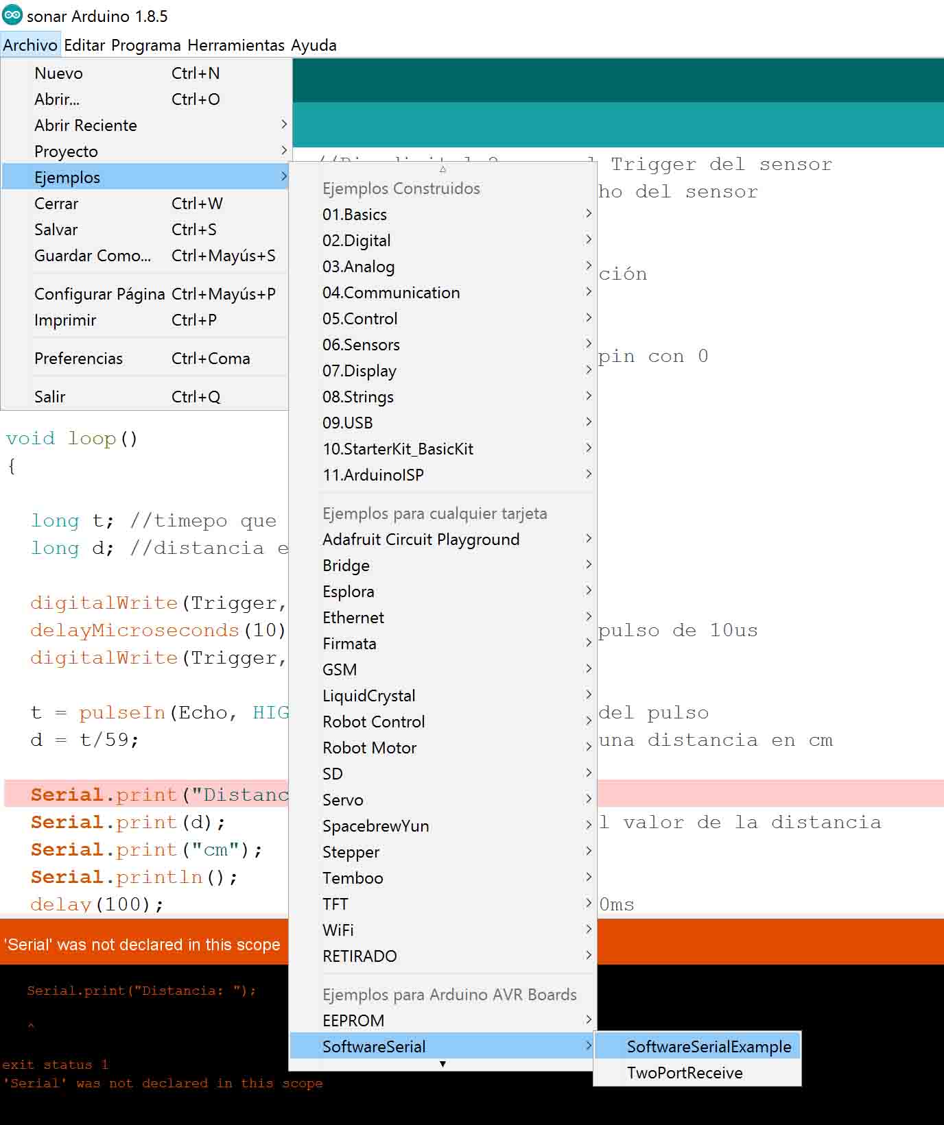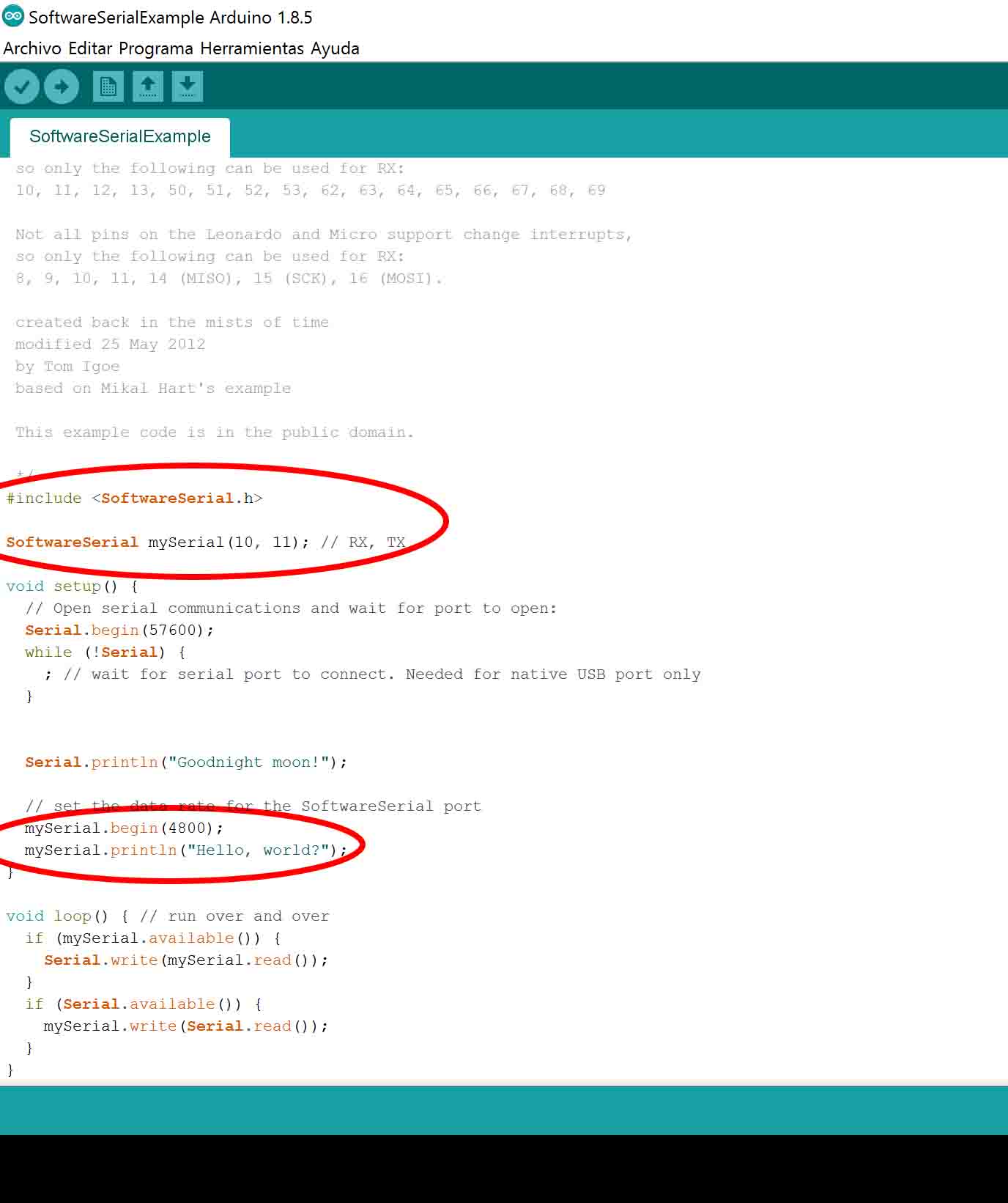 We need to change the library. To do that, we will open the Software Serial example and copy these lines...