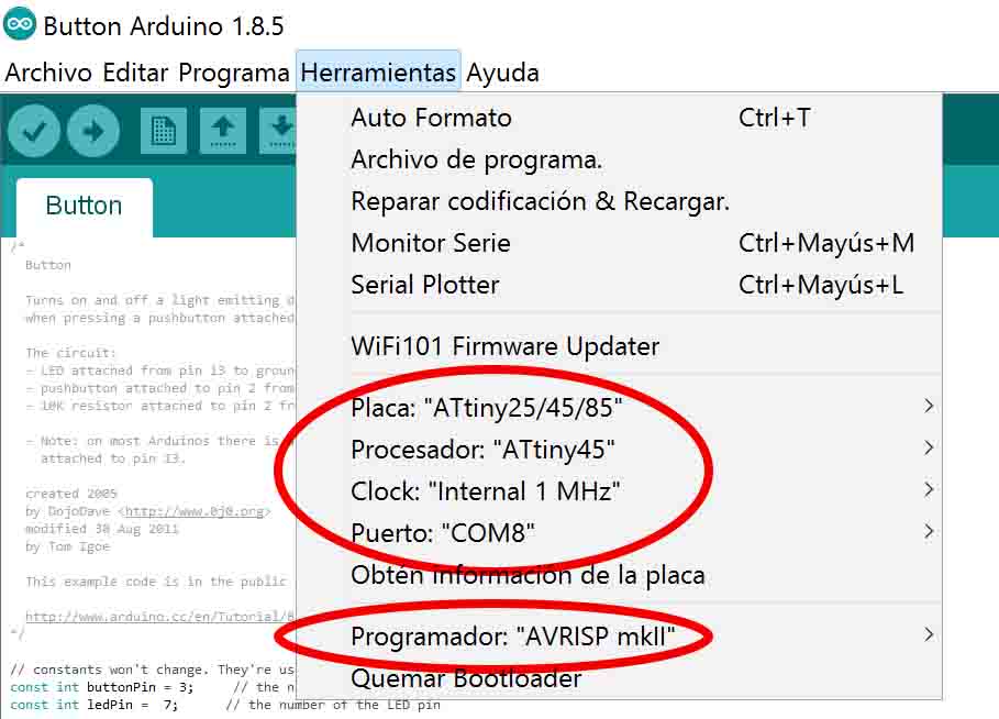 However it will not work because the code is too heavy for ATtiny45 and an error will appear.