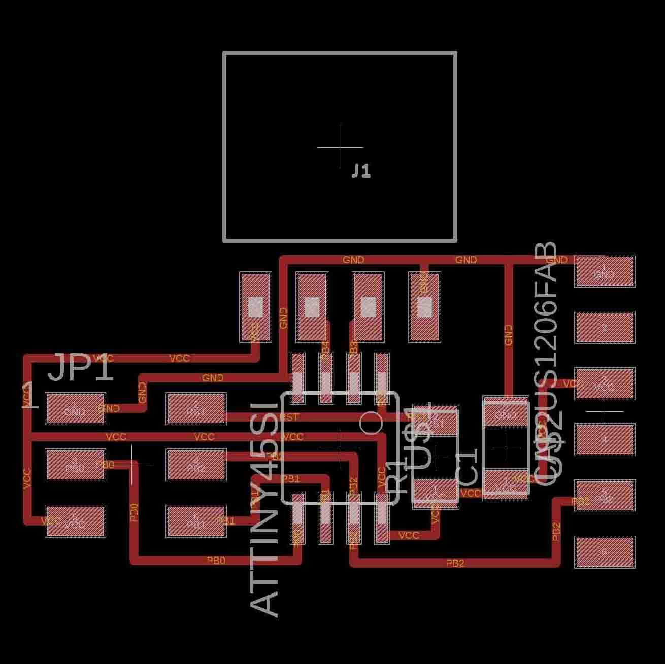 Then generated the milling strategy in FabModules,milled the board with the Roland SRM-20 and soldered all the components.