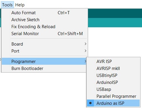 I used an arduino as an ISP to program the board. Follow the next steps.