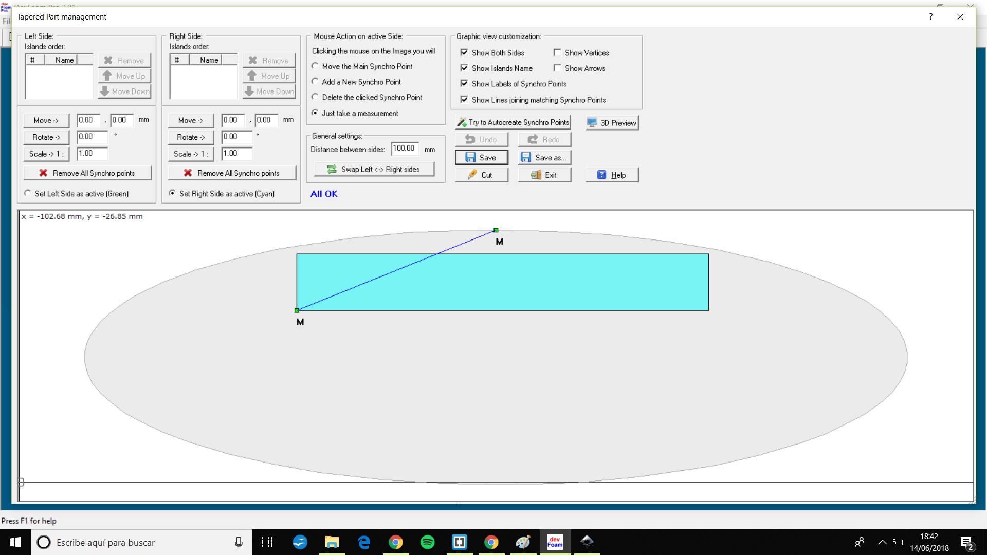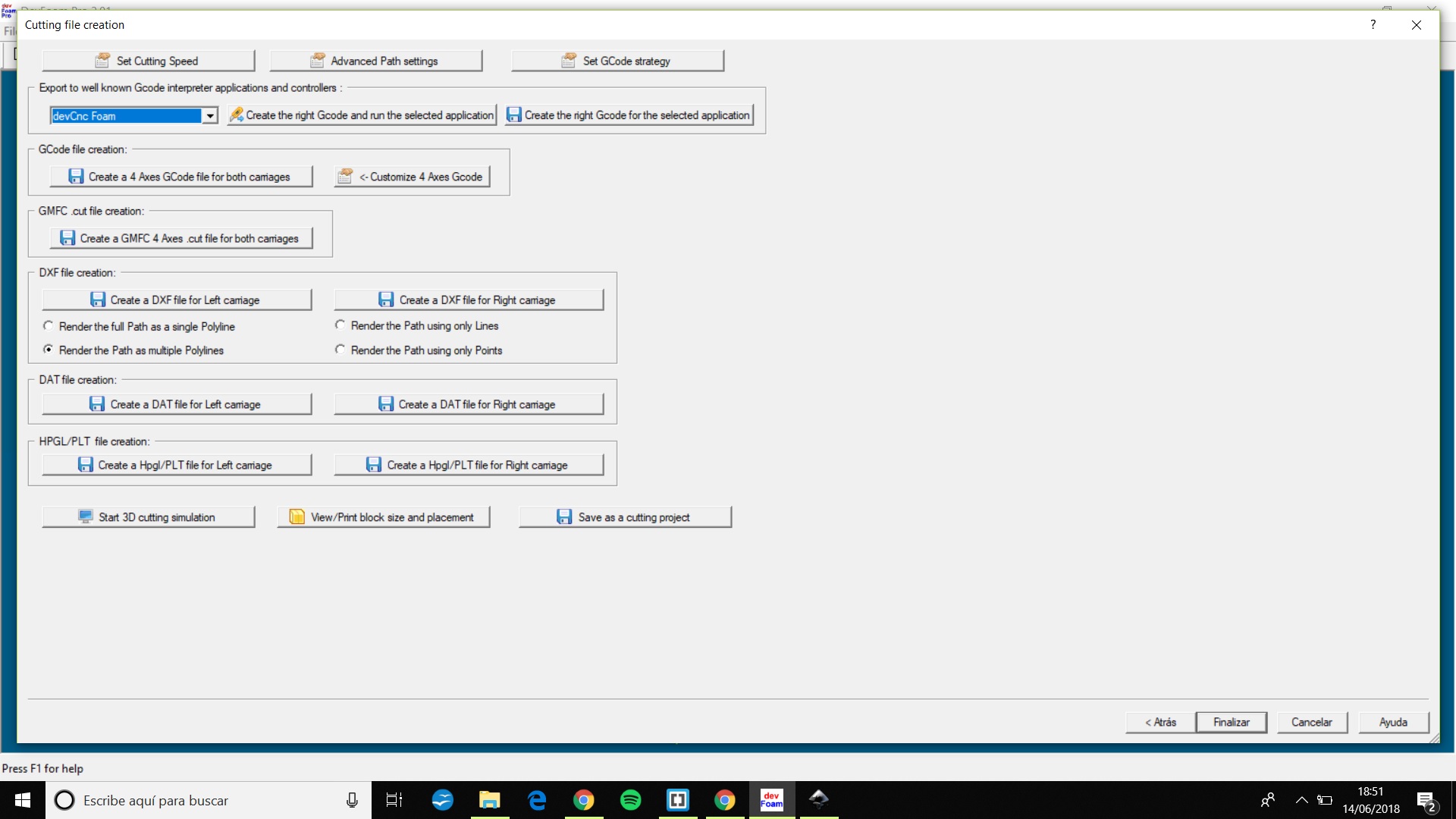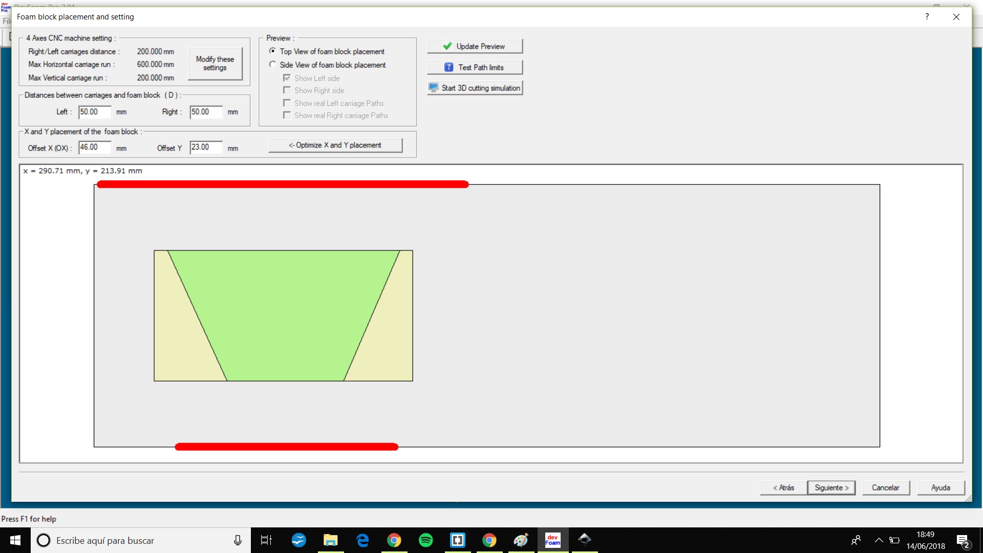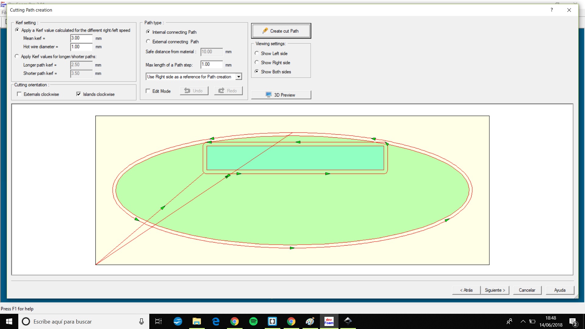 In this window we create a cut path and setup Kerf values and hot wire diameter.