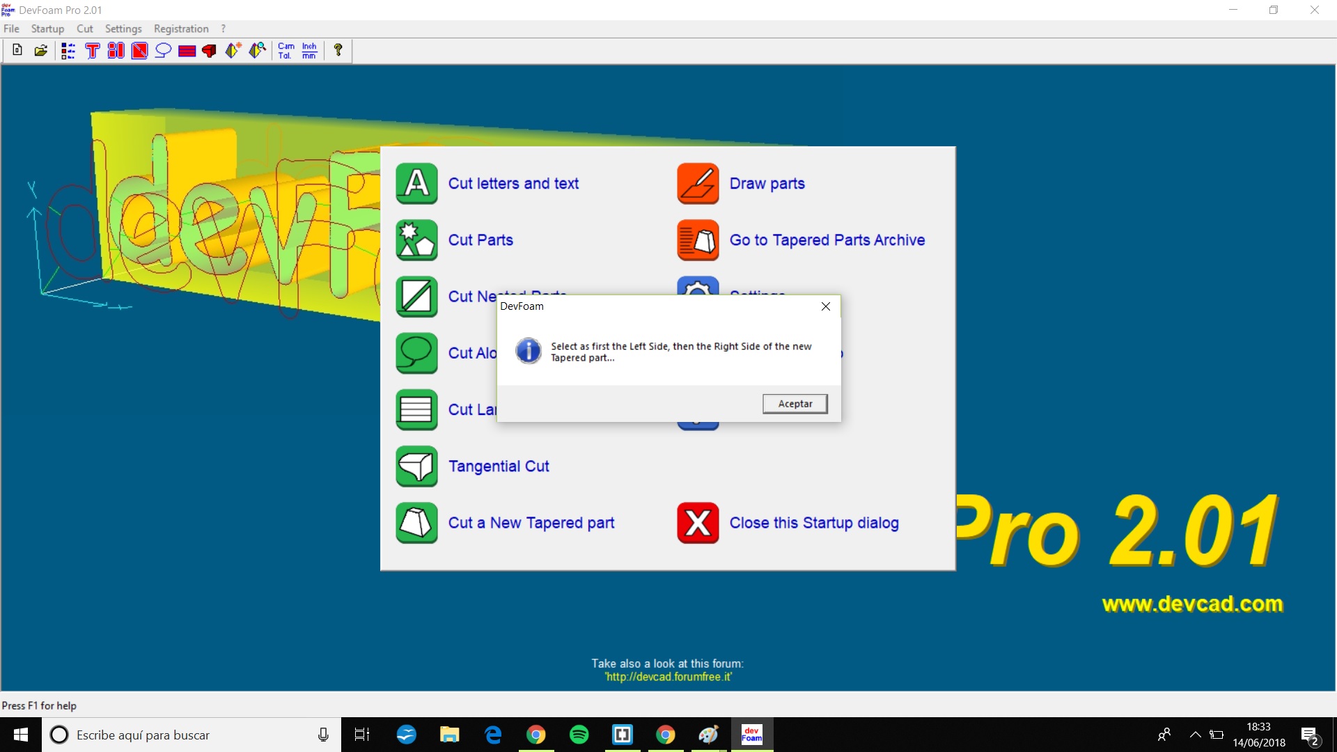 is what we see when we open the software, I will choose the last option "Cut a new tappered part".