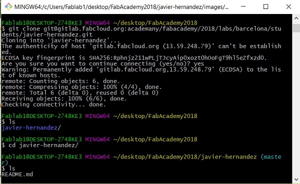 Now! I can clone the repository. For this I type "git clone" on Git Bash