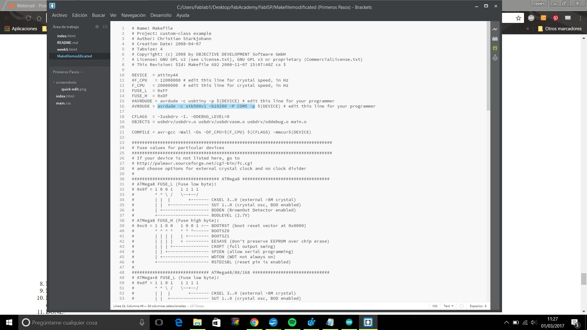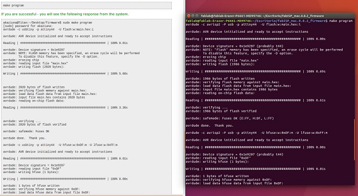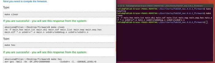 Once we have powered the FabISP, we proceed to move to the firmware directory to compile it.
