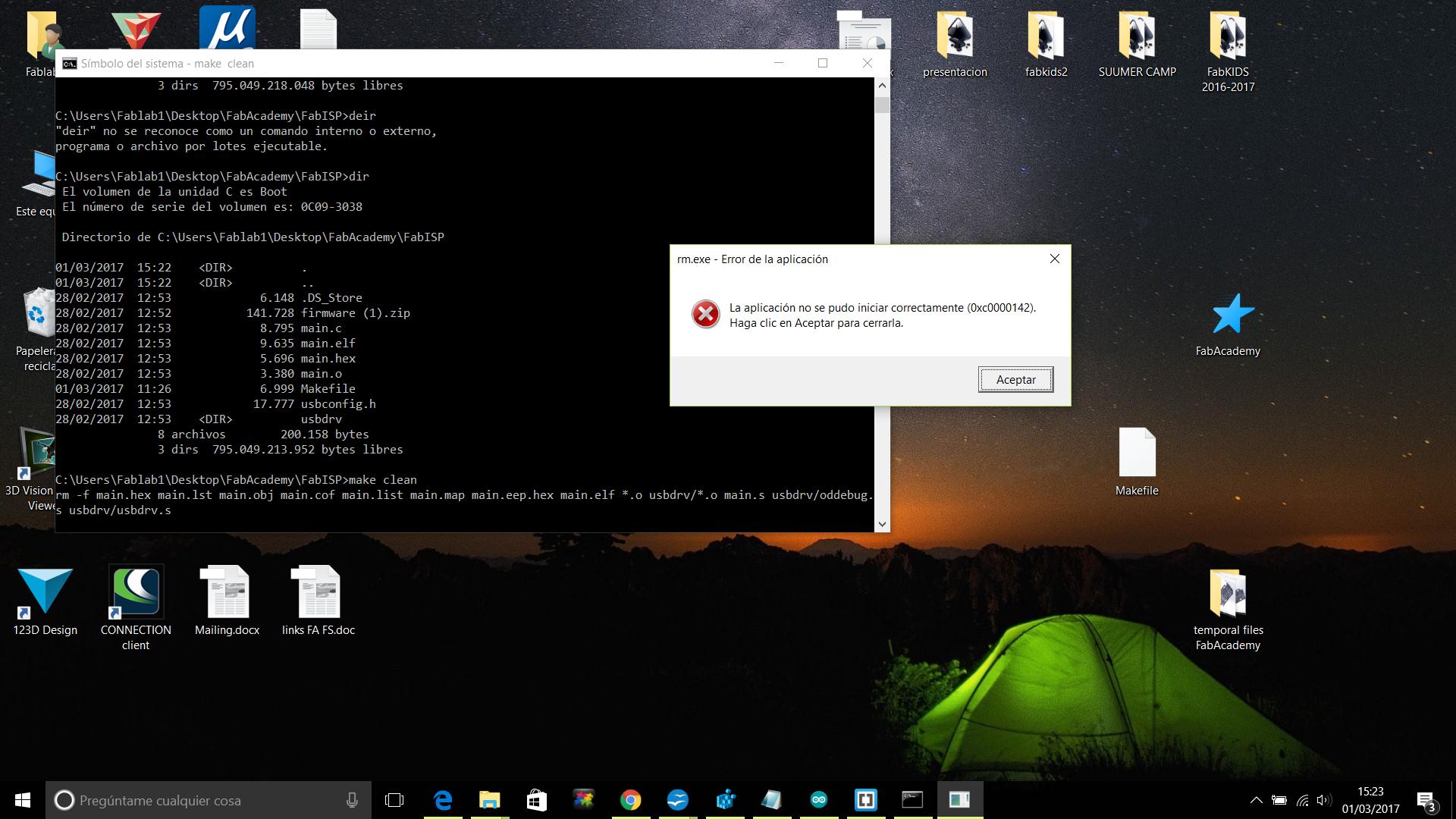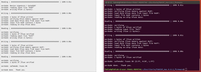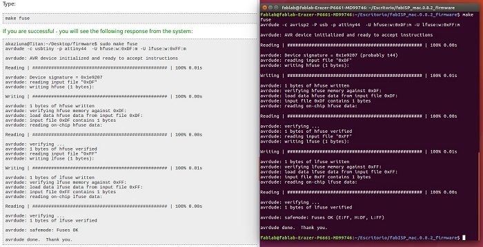 After checked repeatedly that the board was correctly soldered and connected, I decided to try programming the FabISP using Ubuntu as our O.S.