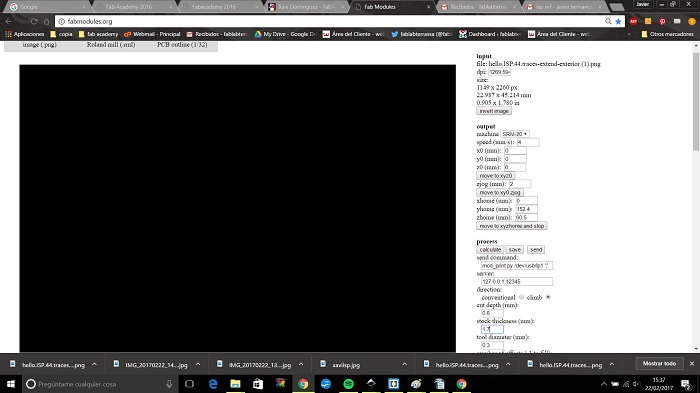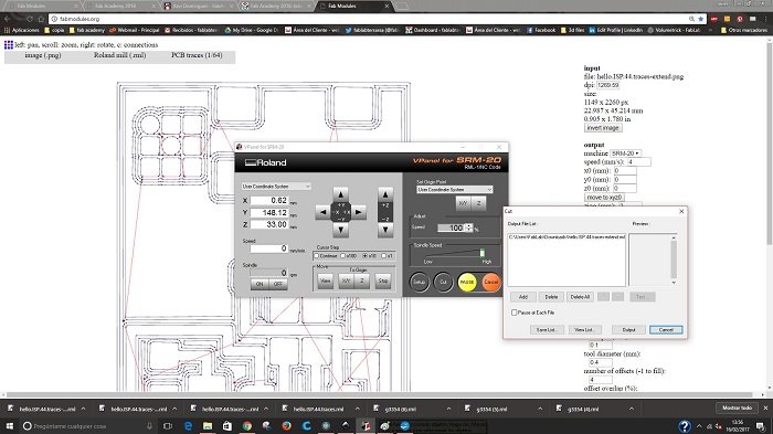 For this work we are going to use Fab Modules , a set of software tools for personal fabrication, intended for use with machines common to fab labs. By using PNG files Fab Modules converts the .png into paths that the Roland SRM-20 can read.