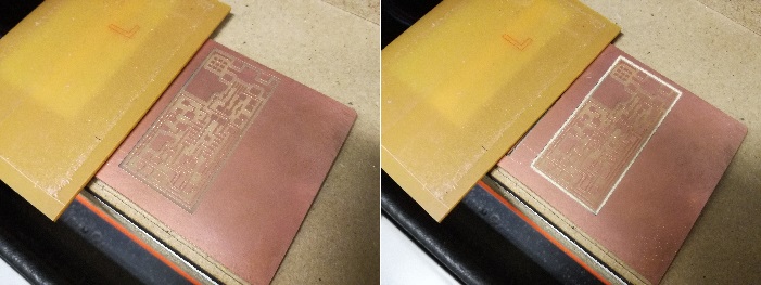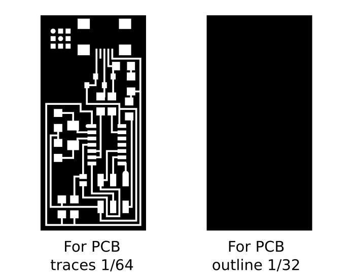For the first milling process (traces) we need a tool of 1/64 of an inch and for the second process (outline) we need a tool of 1/32 of an inch. Are two processes