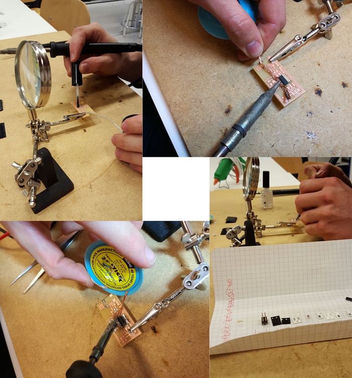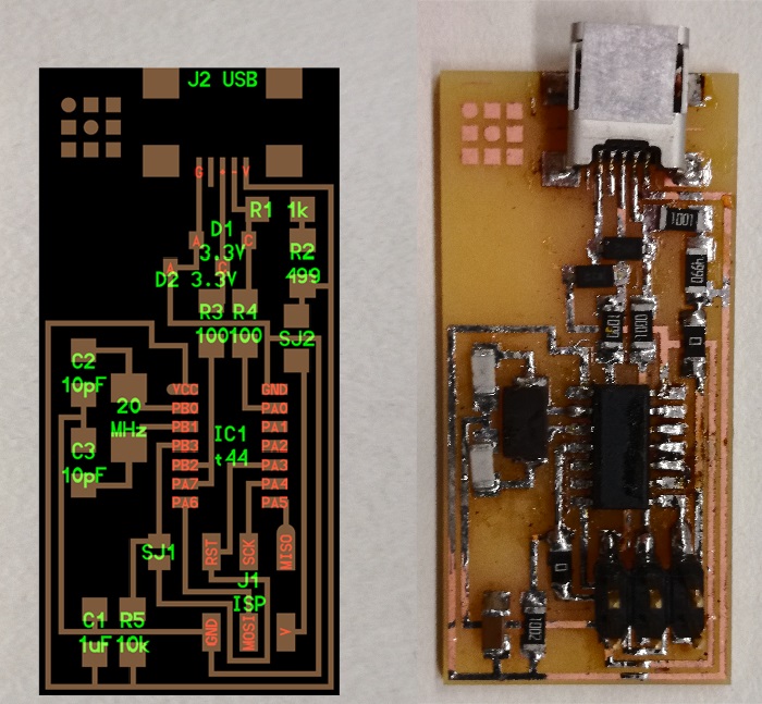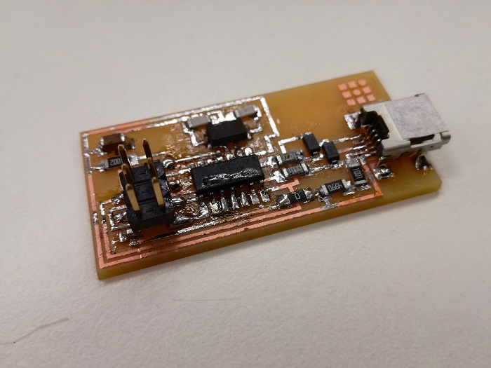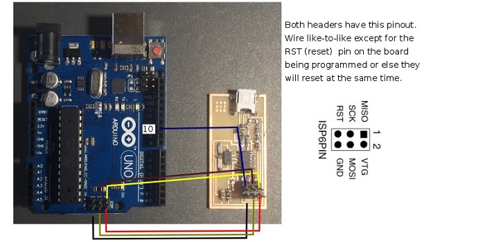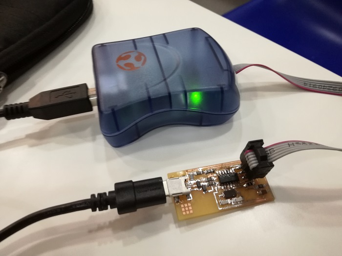 The FabISP is an in-system programmer for AVR microcontrollers, designed for production within a FabLab. That allows you to program the microcontrollers on other boards you make, using a USB cable and 6-pin IDC to 6-pin IDC cable. It's based on the USBtiny and V-USB firmwares, which allow the ATtiny44 to perform USB communication in. software. To produce our own Fab ISP boards, we needed to first mill then board, solder the necessary components and then finally program it.