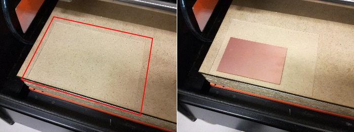 The first step is to prepare a surface to ensure a homegeneous height, as well as adding a platform to ensure that the tool reaches the material to be milled