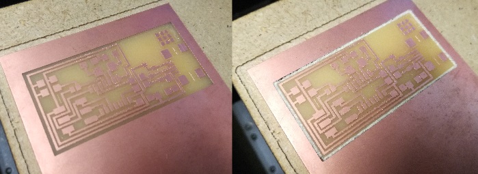 I made a small modification of the FabISP thinking that with the tool of 0.3 millimeters and 15º could engrave more than I want. Raise the contour slightly to keep it out of the outer traces.