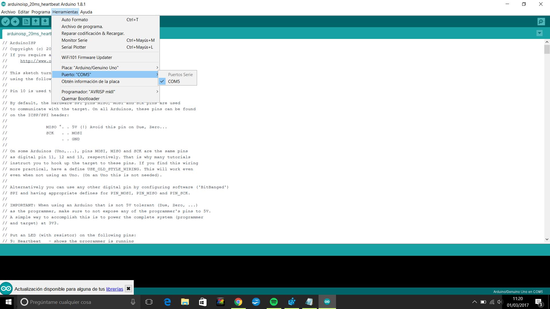 Back to my lab i'm going to try the programming using a Arduino UNO because I don't have a AVRISP. I will folow the instruuctions of an 2016 fabAcademy student
