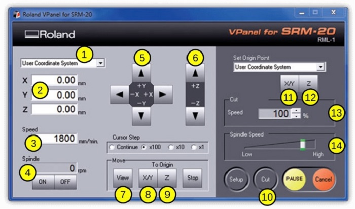 8. Once the position of the origin is set (11) you can move to X, Y origen.