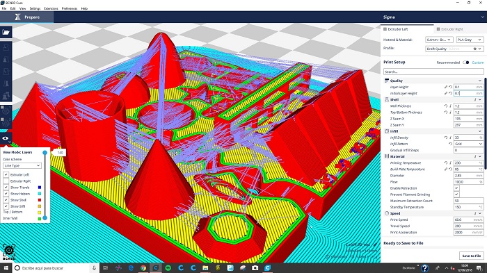 - Here is where we link the function of the object to be printed and how we want it to be done. Depending on the print manager used (i use CURA) , the variables can be related to the material we use, how the machine in going to work and the quality (finish) of the result. To may variables to explain here, it is the experience that will tell us how to set all these variables.