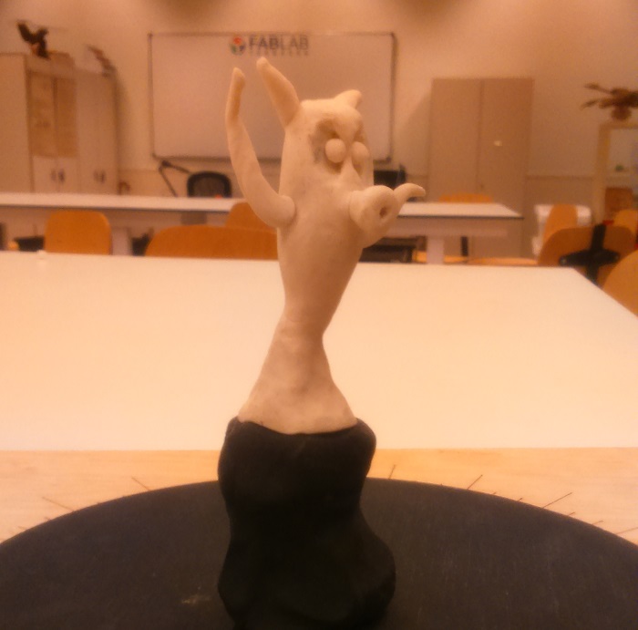 I will use a model made of clay by one of the kids who come to the school activities we do in the lab, I sure he will be happy to see his monster digitized