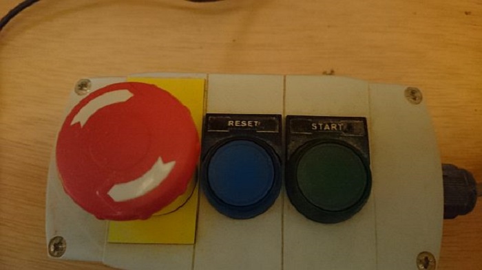 If the machine is ON is better to turn it off and turn it on again to reset the machine, this machine has a "reset Button". There's also a "emergency stop button"
