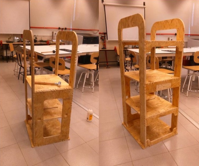 I would have liked to use other types of joints but board material is not good enough to use these connections. I wanted a functional furniture and here it is!.