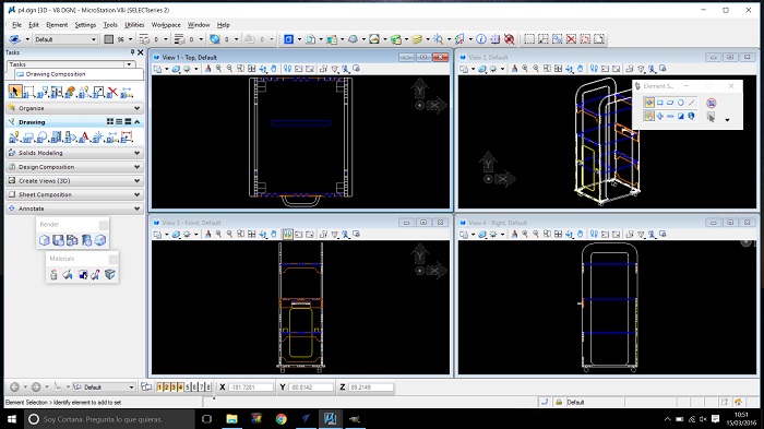 I used the MicroStation design program to design and locate the different parts within the board. To design this object I have taken into account the material that will provide for the exercise and the requirements of the auxiliary cabinet (working height, storage and size of electronic equipment that will host.