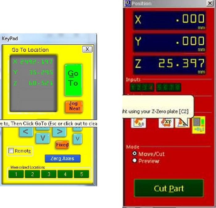 Before setting the x,y and z axis we need to change the milling tool (if is not already placed) Click on the yellow button and the KeyPad window will appear.