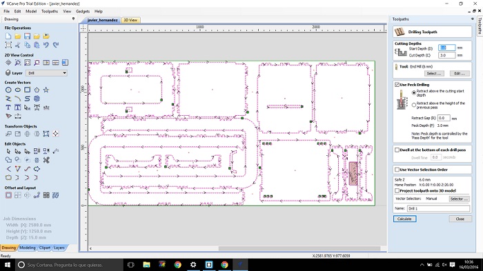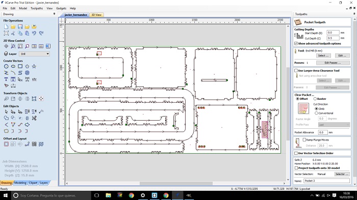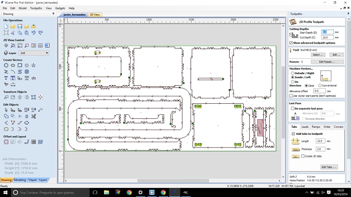 Day 2. I've reconfigured the parameters in the version of VCarve of Fablab Valldaura. Ready to start working with the shopbot