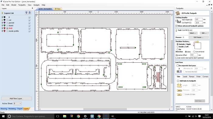 After drawing the dogbones i have setup the diferents works (pocket, inside profile and out side profile. evrething it's ready to export to sbp format.