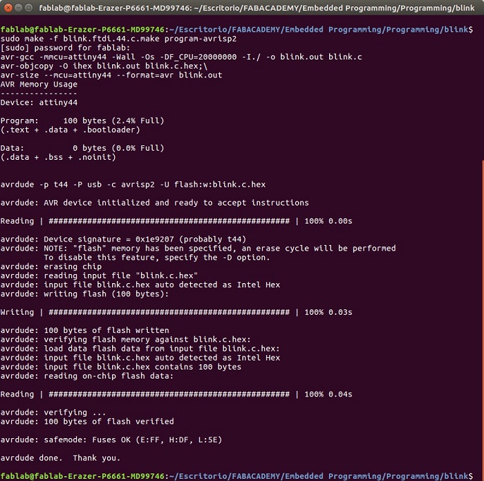 Now it's time to make 'sudo make -f blink.ftdi.44.c.make program-usbtiny'