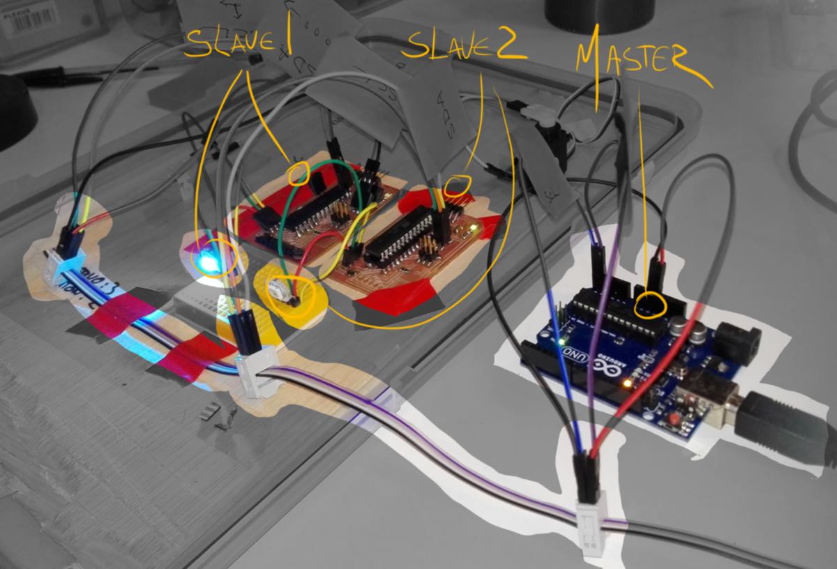 20.06.18 / Last minute addition! My story with I2C network is not over yet. Actually it takes a central place in my final project, and after making specific board for it, based on both ATMEGA328P and ATtiny44, I succeded in creating a network between them :