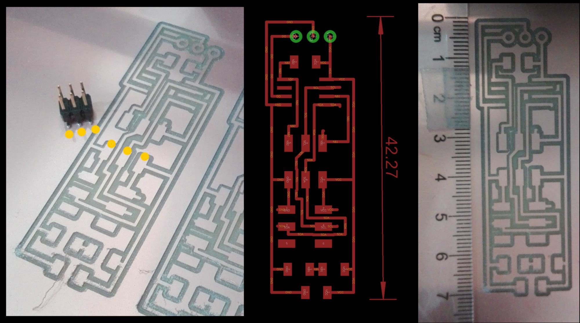 Unfortunately the tracing on two of the boards (at the bottom of the picture below) have been badly traced. Since I have set the origin in Z lower, the end mill has scraped the traces with the toothholder :