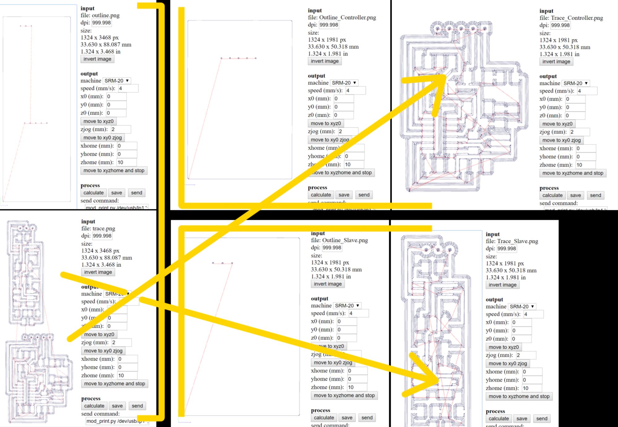 I also designed and fabricated a set of two slaves PCBs and one master PCB to set up a similar I2C network.