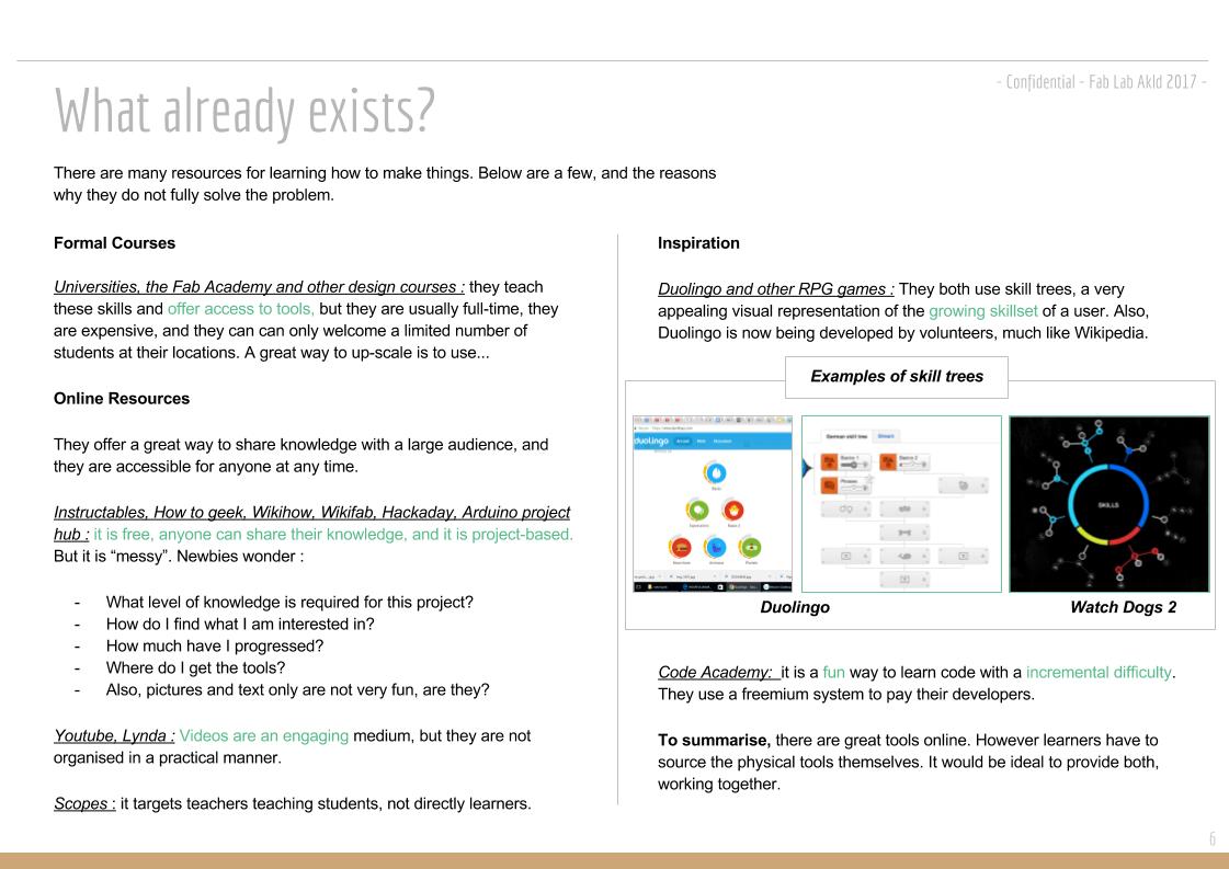 Fabkit will be deployed in refugee camps, therefore, due to the inponderable of such situation, they wish to rely on paper or written tutorial rather than videos. There is no digital interface planned. Only one person - the instructor - has access to the tools, machines and materials, and give access to learners. These contraints limit our opportunity to immediately collaborate, excepted to produce and curate the content of tutorials.