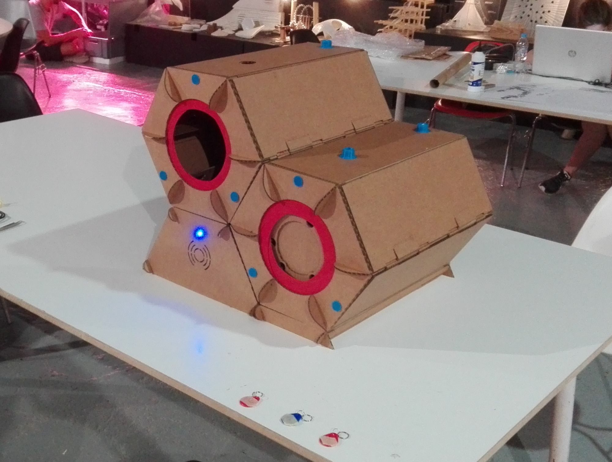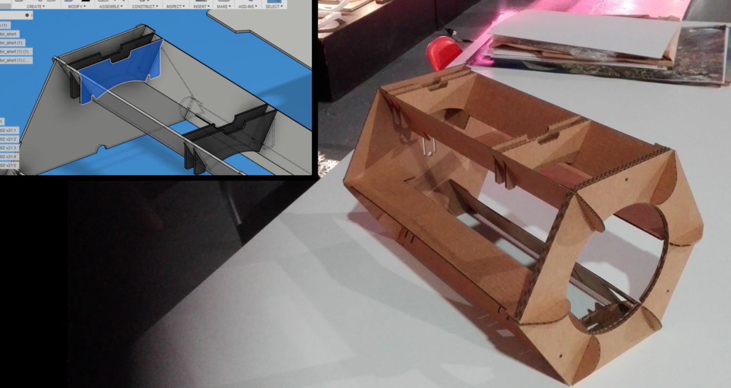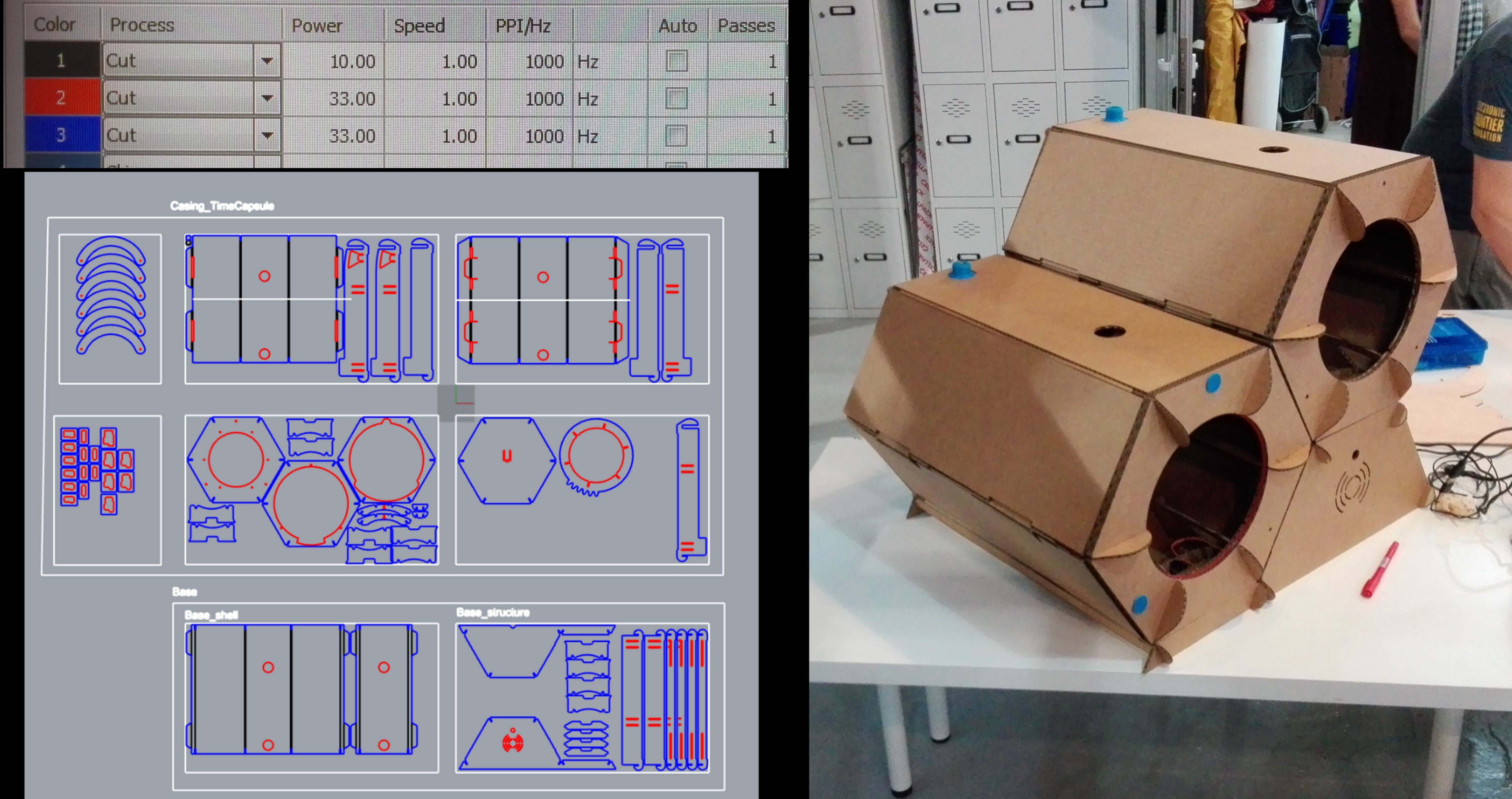 Two techniques were used : laser cutting (structure, shell) and 3D printing (connectors). All elements were designed in Fusion360 and Rhino: