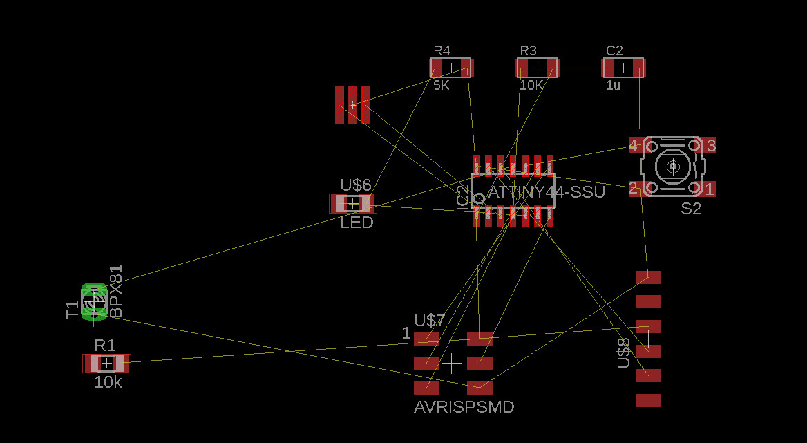 I'm going to use a light sensor for this assignment, and I'm going to redesign the board to have the 4 pins free and connecting to free pins, to which another board with a sensor can be connected.