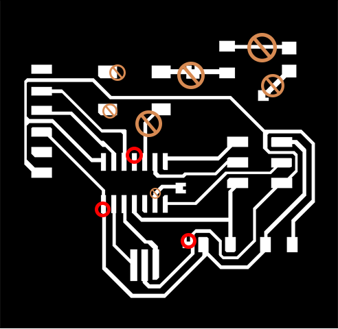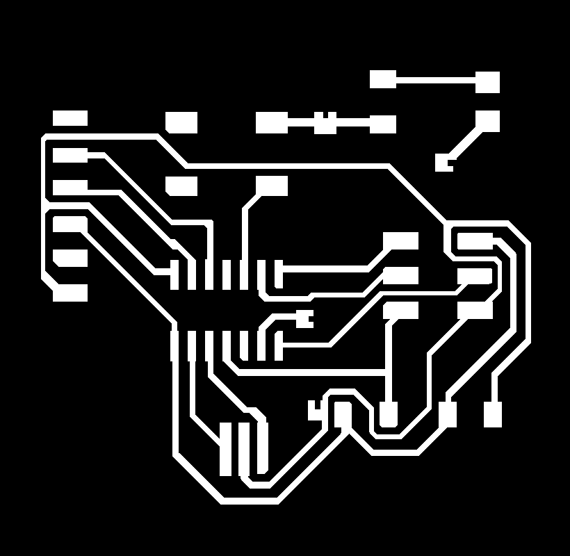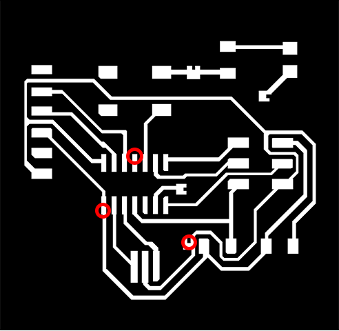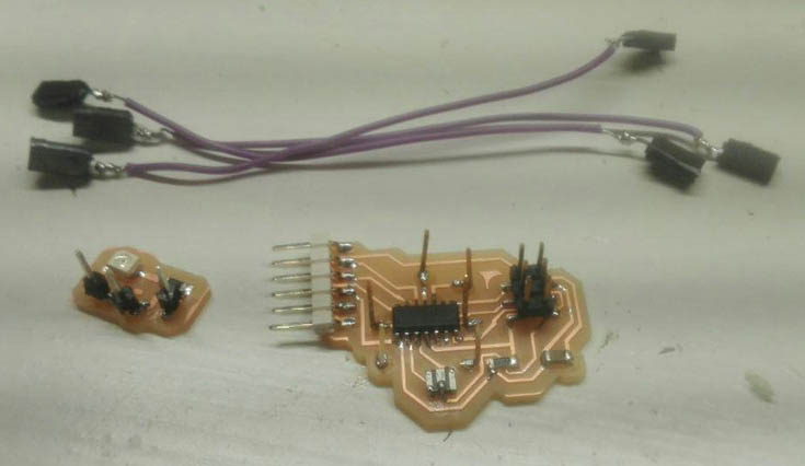 At the lab, I milled the design in the small CNC machine Roland MDX-20, at 1k DPI, everything went super smoothly. Everything went super smoothly during soldering too, and I also soldered some connectors to a few wires to properly hook up my sensor to the chip. I ended up with: