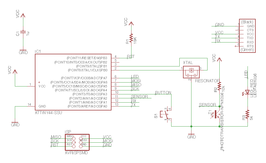 I opened up my schematic from the Electronics Design week in Eagle, and simply added the necessary parts to make a sensor work.