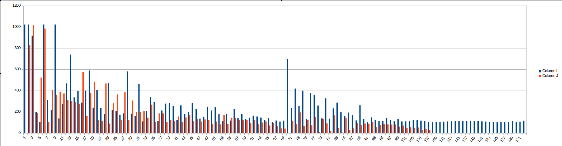 Blue lines the piezo near the hammer, red lines 25cm away.