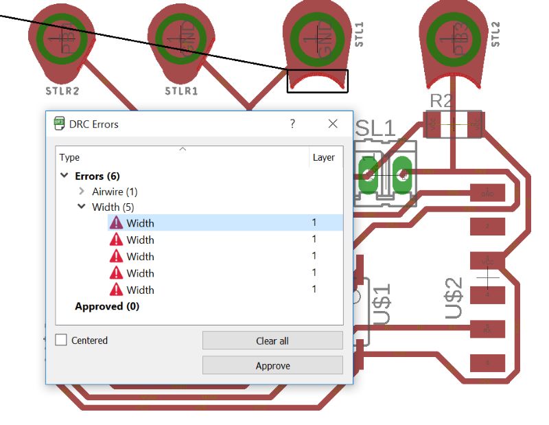 DRC errors I ignored, because there is nothing wrong with the width of these pads.