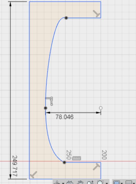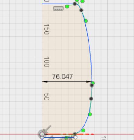 The method of drawing is more or less the same. I sketch one half of the cell body in Fusion 360, using the line and spline function. Then I revolve the sketch. this time I only revolve it 180 degrees. Because I will make the cell body in two parts. The ShopBot is not able to mill the cell body as a whole. I saved the sketch for another purpose: the skeleton that will cary the LEDS and the boards of the serial network. This I will describe on the page of my final project.