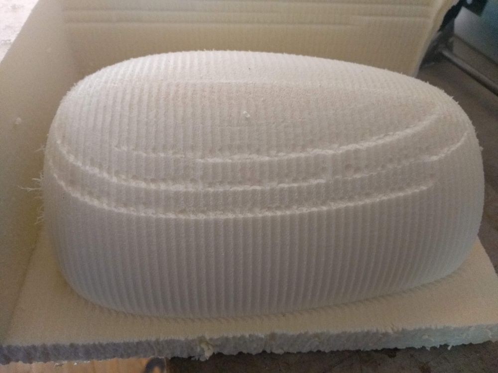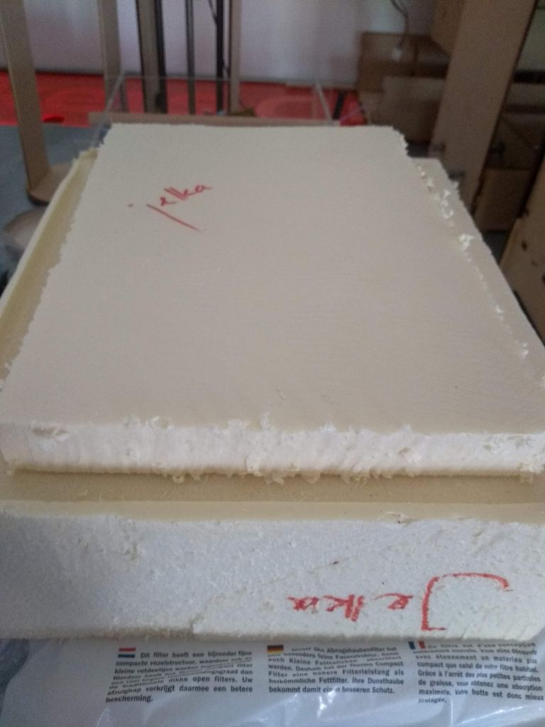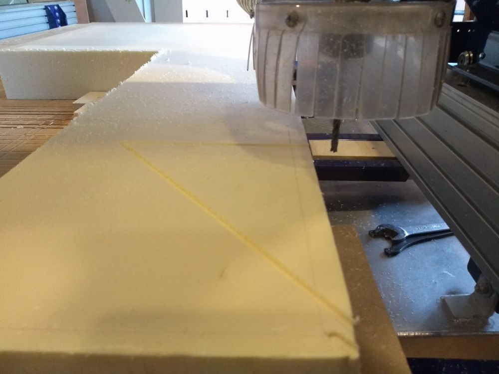 Right at the start I noticed somethin was wrong. The machine was milling in the air. I stopped the robot and started over. This time setting the origin of X/Y. Luckily I did make a note of the coordinates. Then after 2,5 layers I noticed the model had shifted in the Y-direction for 2mm or so. I stopped the machine again and checked if my foam shifted. I had not. I turned the machine on again and hoped for the best.