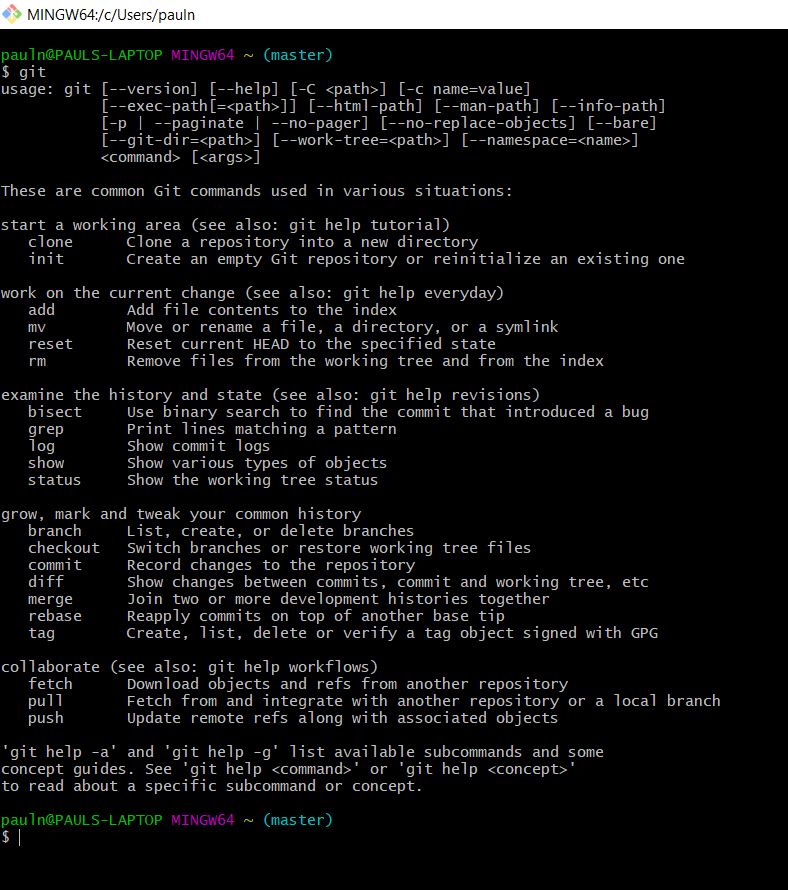 I had git installed from last year, but if not I could get it from the Git homepage. I also downloaded Git BASH which provides an emulation to run Git from the command line in windows.