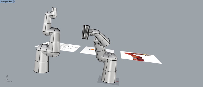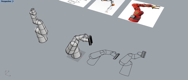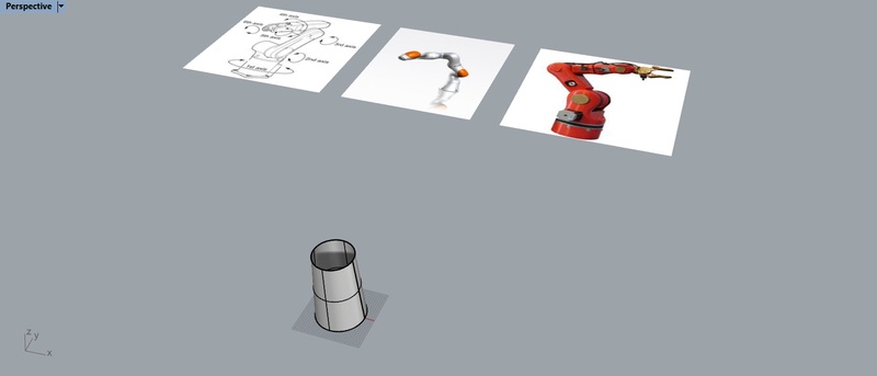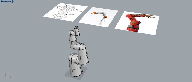 For the final project sketch I used Rhino, modelling a 3D robotic arm. I first looked at some images of 6 axis robotic arms and how the joints are aligned.